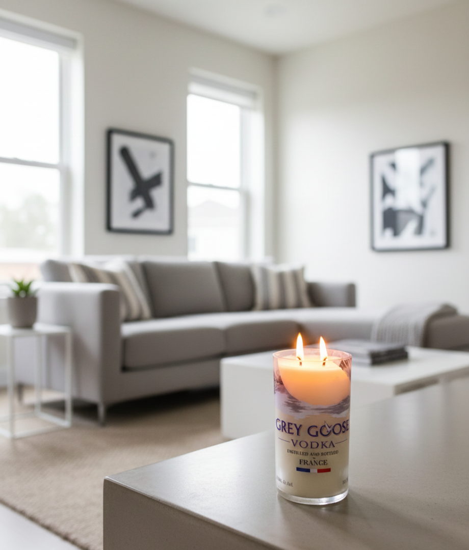 Trasforma un'icona dell'eleganza nel mondo dei distillati in un punto luce e profumo per la tua casa. Questa candela artigianale è realizzata riutilizzando una vera bottiglia di Grey Goose Vodka, tagliata e levigata con cura per creare un contenitore dal design pulito e distintivo. È l'oggetto perfetto per chi cerca uno stile moderno e un impatto ecologico minimo.