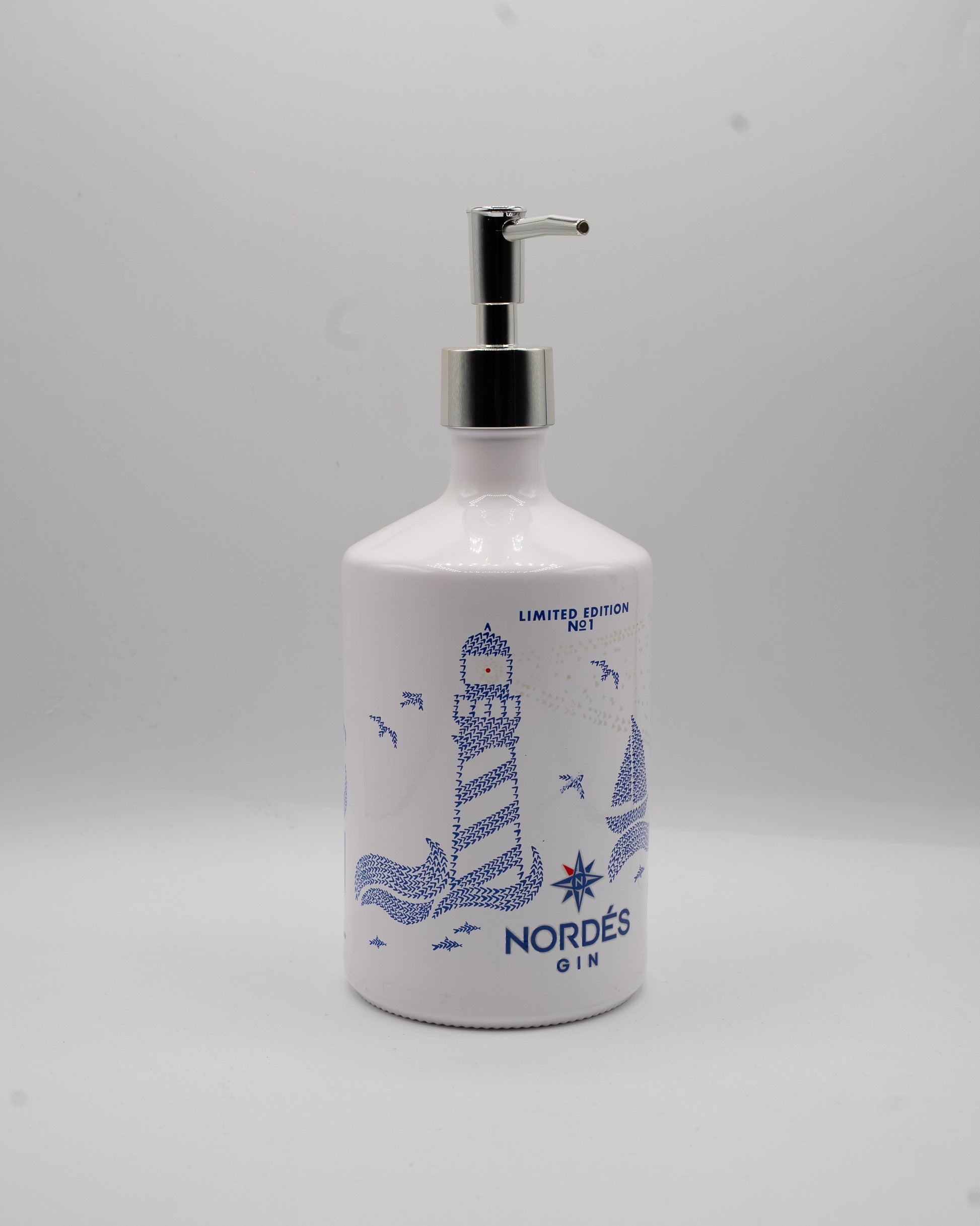 Design esclusivo: Realizzato a partire da bottiglie Nordes in edizione limitata, con decorazioni raffinate che richiamano uno stile marino elegante e moderno.