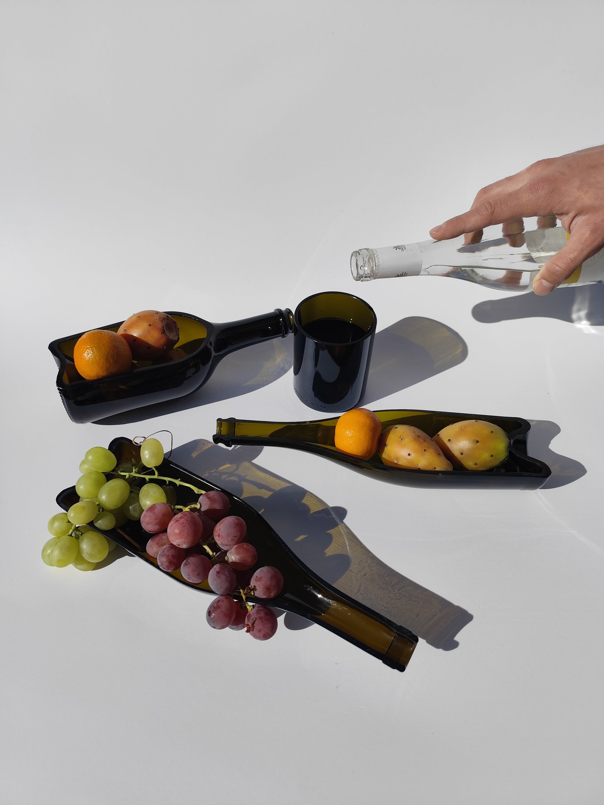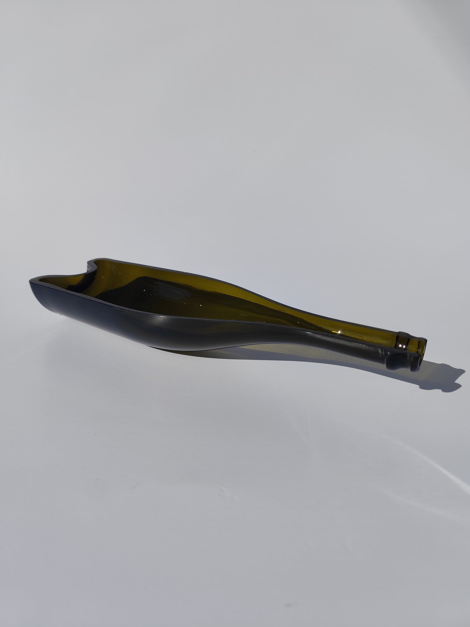 Dai un tocco unico ai tuoi aperitivi con questo esclusivo vassoio realizzato da una vera bottiglia di vino riciclata, lavorata a caldo e modellata per ottenere una forma elegante, sinuosa e completamente nuova. Ogni pezzo è artigianale, quindi leggermente diverso e assolutamente originale.